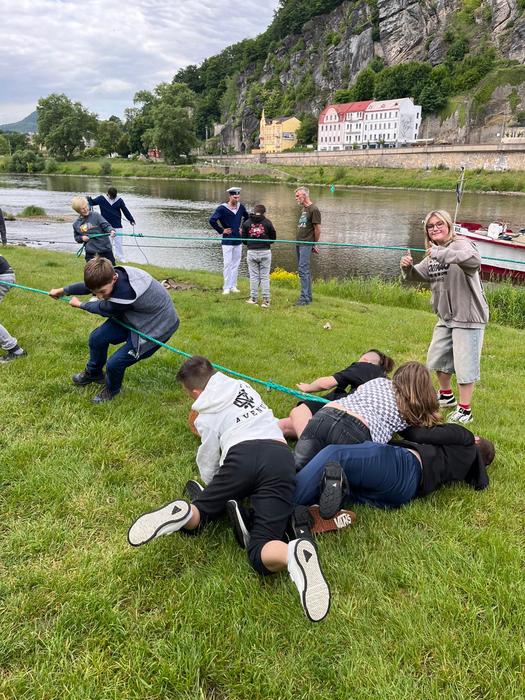 V posledním květnovém týdnu se čtyři třídy z prvního stupně a sedm tříd ze stupně druhého zúčastnilo tradiční děčínské akce k Dětskému dnu zaměřené na lodní tematiku. Do našich plánů zasáhlo nejen nepříliš příznivé počasí, ale také porucha na motoru lodi Bohemia DC. Program jednotlivých tříd se tedy lišil, některé stihly zažít i plavbu lodí, další se podívaly na unikátní kolesový parník Labe a zkusily si lodnické disciplíny. Mezi další cíle výjezdu pak patřil děčínský zámek se svými zahradami, budova ČVUT (3D tisk), obchodní centra či různá bistra. Především sladké občerstvení jistě všem výjezd zpříjemnilo. Doufáme, že příště se motor i počasí umoudří.