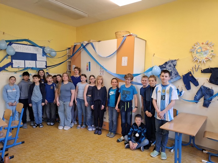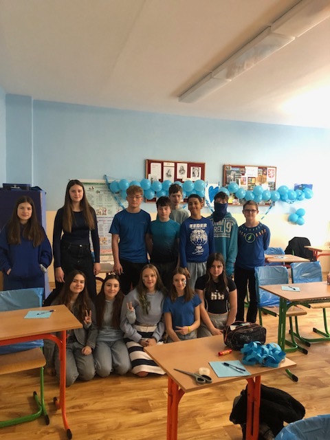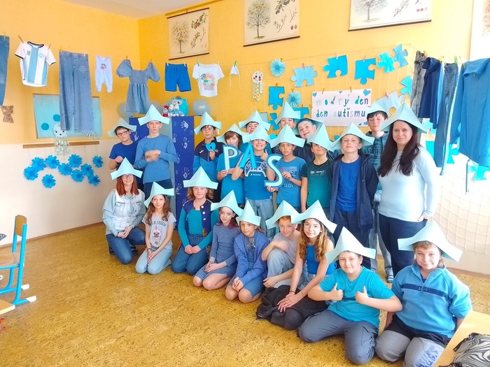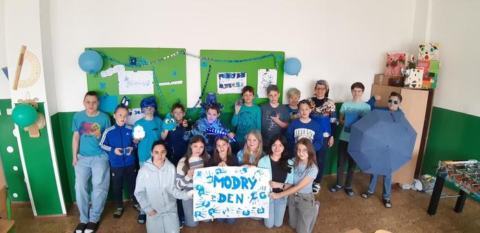 Celý den se nesl v modrém duchu – žáci i pedagogové přišli oblečeni v modré barvě jako symbol podpory osobám s autismem.