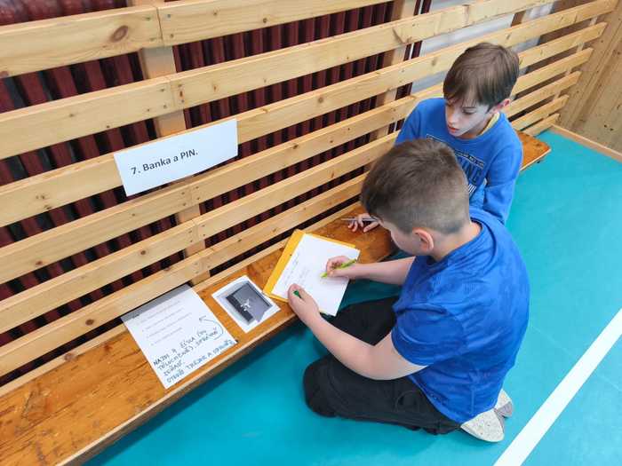 Hlavní součástí projektového dne byla "Cesta za finanční moudrostí" – tematická hra se stanovišti a QR kódy, které vedly žáky ke konkrétním finančním úkolům. Vytvořili jsme 10 stanovišť, na kterých děti ve skupinkách spolupracovaly, řešily úkoly a učily se přemýšlet nad běžnými životními situacemi – například jak poznat klamavou reklamu, poznat výhodnou nabídku, co je potřeba a co naopak nutnost, nebo kolik si mohou dovolit utratit z kapesného. Každý tým využíval QR kódy, které je naváděly k úkolům – ať už šlo o rozhodování při nákupu, výpočet ceny zboží, nebo jednoduché porovnání produktů. Nakonec si každý vytvořil a pojmenoval svou vlastní bankovku.