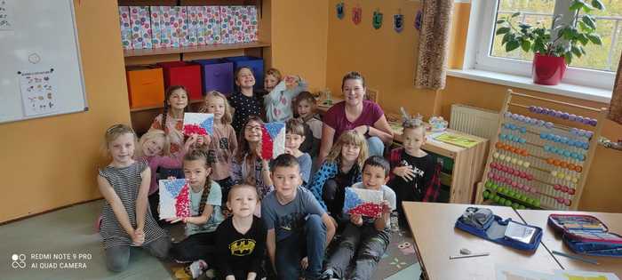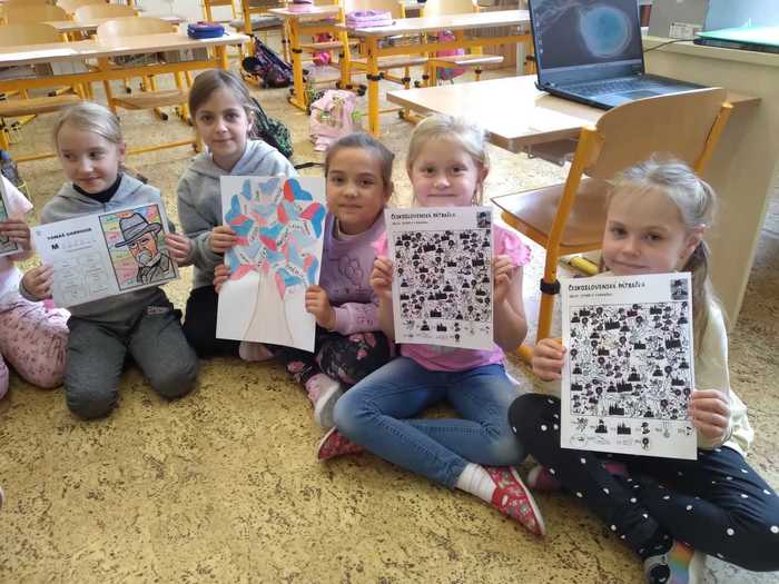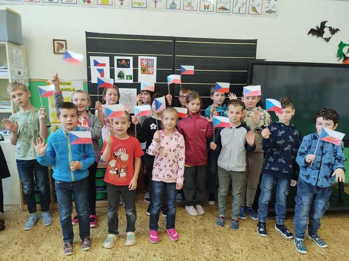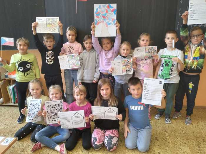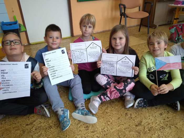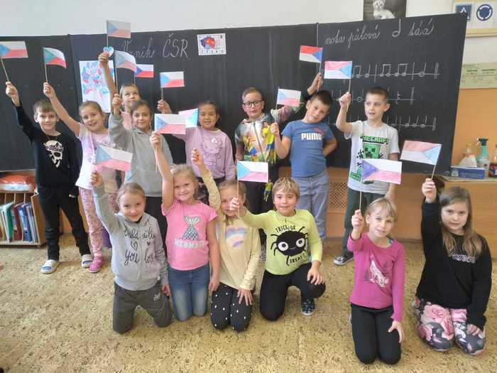 Žáci v 1.ročníku se seznámili s českou měnou, porovnávali mince, určovali hodnotu, procvičovali zrakové vnímání, doplňovali logickou řadu, stříhali a lepili mapu ČR, určovali počáteční hlásku ve slovech, na čtvrtku si ve skupinkách procvičili jemnou motoriku a z krepového papíru nalepili vlajku ČR. V 2.ročníku žáci procvičovali počítání do 20, hledali poztrácené symboly, stříhali a lepili mapu ČR, pokoušeli se vyřešit československé přesmyčky. Každý žák si vyrobil papírovou vlajku ČR a společně vyrobili národní strom. Poslechli si také státní hymnu a seznámili se se všemi státními symboly. Žáci 3.ročníku se kromě vzniku ČSR seznámili také s prvním prezidentem a všemi státními symboly. Procvičovali násobení do 9, slovní druhy, přesmyčky, vyzkoušeli si spojovat některá česká a slovenská slova a jejich významy. Dokreslovali portrét TGM, poslouchali a dopisovali chybějící slova státní hymny. Všechny třídy na závěr zpívali české písničky, a hodnotili projekt.