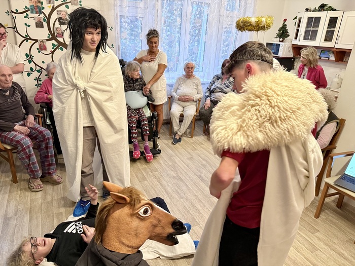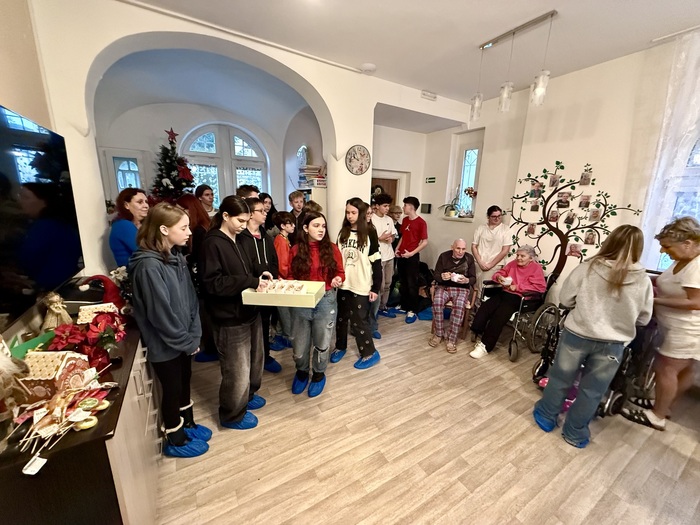 Letos jsme připravili vánoční představení pro seniory z Domova se zvláštním režimem ČČK Děčín. Program zahrnoval humornou scénku a nacvičené vánoční písně, které přinesly sváteční atmosféru a radost. Na závěr děti obdarovaly seniory drobnými dárky – košíčky plnými vánočního cukroví.