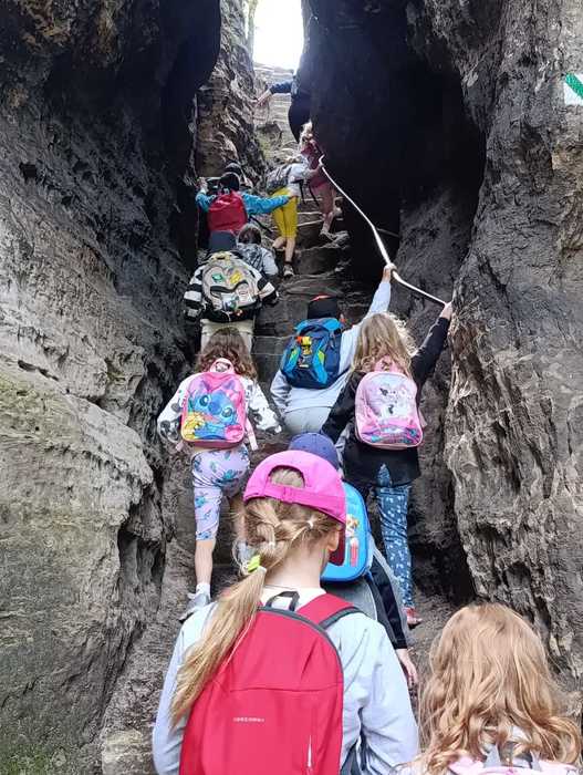 Třída 1.B navštívila skály v Tisé. Děti se proměnily ve skutečné horolezce a prozkoumaly každou skulinku.