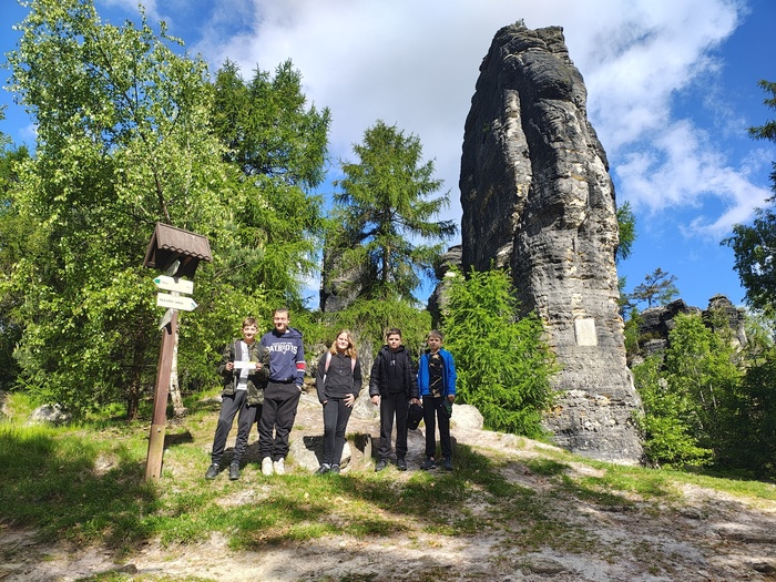 Poslední akcí zájmového útvaru sportovní hry bývá každoročně výlet do Tiských stěn. Většinou nám počasí přálo a nejinak tomu bylo i v letošním roce. Ráno po probuzení nás za okny přivítal krásný slunečný den. Na zastávce se nás sešlo sedm. Autobusem jsme dojeli do Tisé. Prošli jsme si skalní město, na jehož konci jsme si u Turistické chaty dopřáli malé občerstvení, které dle mého mínění ke každému výletu neodmyslitelně patří. Poté už jsme svižným krokem vyrazili krásnou jarní přírodou přes Sněžník dolů do Jílového. Ačkoliv si občas někdo z dětí malinko postěžoval, že je cesta nějak dlouhá, výlet jsme si nakonec všichni pěkně užili.